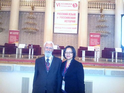 参加此次大会的有俄罗斯政界、各社会团体、教会、新闻媒体、青年组织、文化艺术团体的代表,俄罗斯及全世界80多个国家的知名学者、俄语教师1000多人。我校“俄语中心”主任杨可教授应邀出席了此次大会。这是我校俄语中心主任第二次应邀出席俄语世界大会。本次大会期间杨可参加了名为“俄罗斯历史年” ,“俄语世界基金会资助项目”,“‘俄语中心’和‘俄语世界办公室’活动”的主题讨论和园桌会议,与来自世界各国“俄语中心”的主任们交流了经验,还接受了俄罗斯教育电视台(ТВ ПРОСВЕЩЕНИЕ)的采访,介绍了我校俄语教学的情况和我校“俄语中心”的工作。
