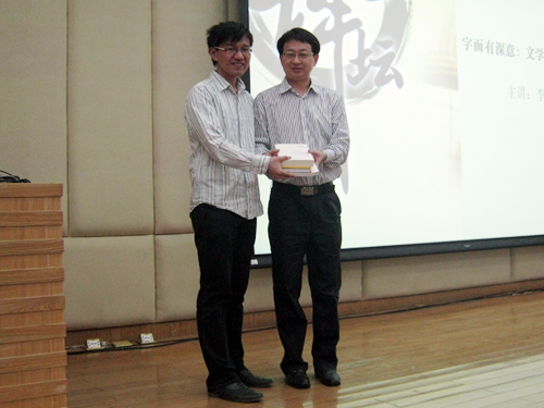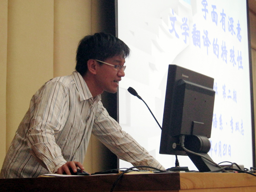 讲座伊始,李双志博士首先以一则翻译趣事说明了翻译不能停留在字面,而要深入到字面下的深意的道理,并借此引出今天讲座的主题。本期讲座的题目便是“字面有深意:文学翻译的特殊性”。接着李双志博士便全面地阐述了自己的观点,将文字的“言”与“意”、“表象”和“存在”之间的关系细细道来。他的演讲风格亦庄亦谐,既有古典诗词穿插其中,又有网络流行语时而闪现,本身就让听众领略到了语言文字的魅力。在阐述完之后,李双志博士摘取了德国文学经典文本,以及各种版本的翻译,从里尔克的诗歌到托马斯·曼的小说,从字斟句酌到篇章的运筹帷幄,都进行了详尽的分析。