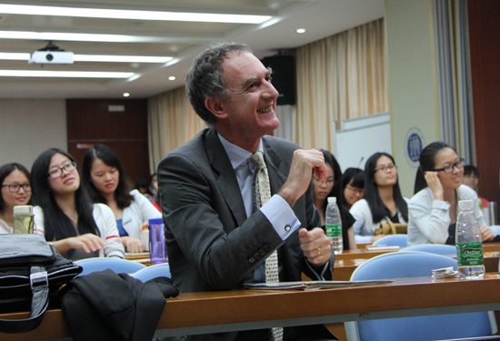 就现场意大利语系的学生,理查雷利·拉斐尔先生还特别说到,语言与技术一样需要创新以服务现代人,所以语言学习要与时俱进,不能墨守成规。