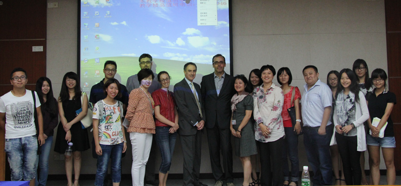 本网讯10月21日,“驻广东的意大利企业的创新:玛涅蒂-马瑞利的经验”讲座在六教108会议室正式开讲。出席本次会议的有意大利驻广州总领馆总领事雷腾飞先生,意大利驻广州总领馆文化办公室负责人施丽萍女士等嘉宾与领导。马瑞利汽车电子(广州)有限公司总经理,中国意大利商会副主席理查雷利·拉斐尔先生为本次会议的主讲人,他针对跨国集团玛涅蒂-马瑞利最近研发的项目与集团在中国的发展进度进行介绍。