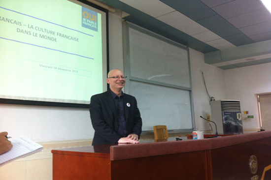 法语系的邀请,法国驻广州领事馆科技教育合作专员Christophe BONTÉ先生来到成人在线