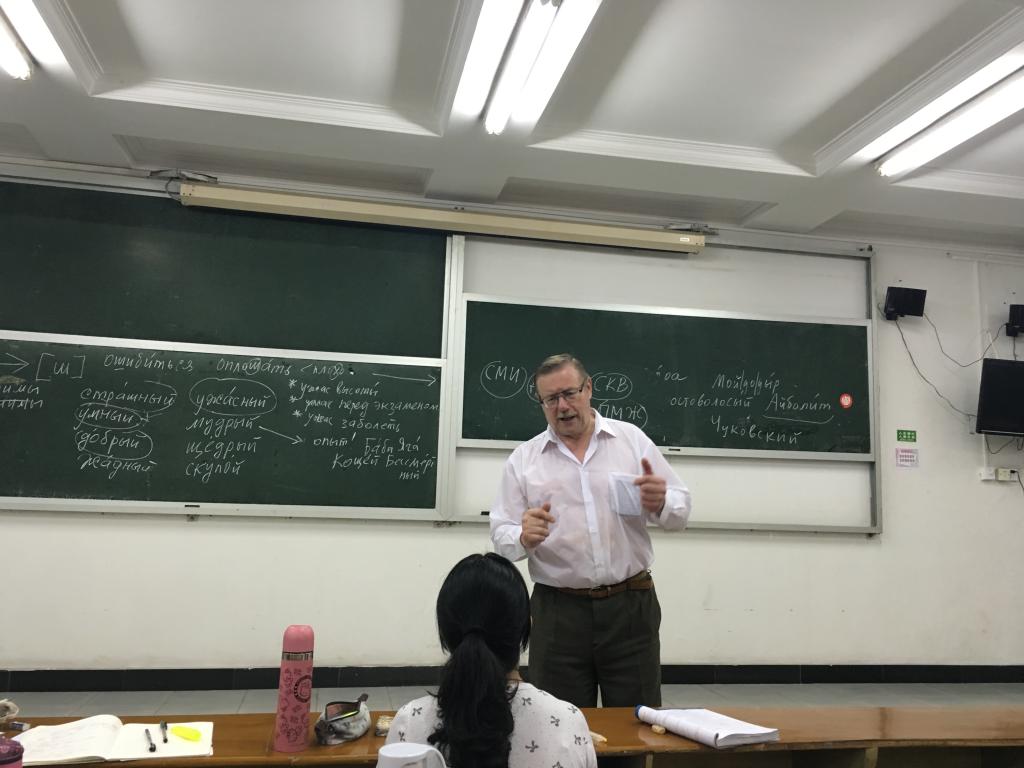 在讲座的末尾,诺尔曼教授与同学们积极互动,并祝愿大家在俄语学习上取得更大进步。