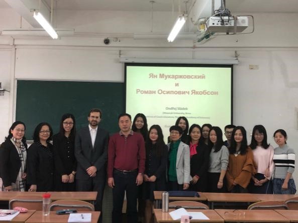本网讯 2017年11月29日、30日,在学校海外名师项目的支持下,来自捷克的专家安德烈·斯拉德克教授为成人在线 俄语专业本科生和研究生开设了题为《布拉格结构主义学派:穆卡若夫斯基与雅各布森》的讲座。俄语系不少教师也饶有兴致地前来听讲。