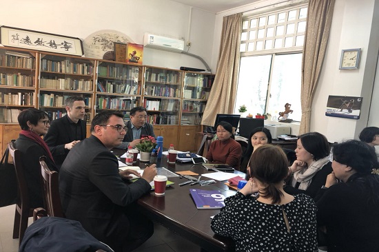 本网讯 3月21日上午,北京歌德学院副院长及德语教学工作负责人Rafael Deschka先生,北京歌德学院德语教学合作处主任Jan Sprenger先生和香港歌德学院副院长、语言部主任Simone Voigt女士莅临我校,对成人在线