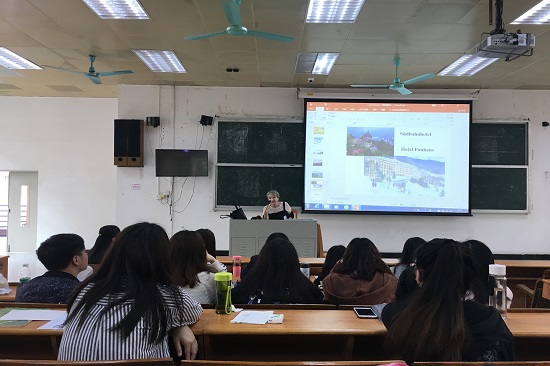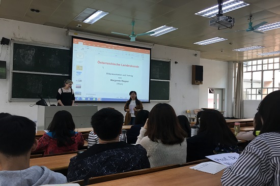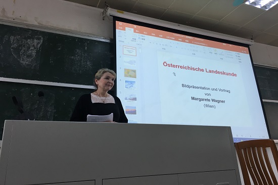 本网讯 2018年3月26日上午,奥地利概况讲座在二教217教室顺利举行。维也纳大学日耳曼学教授玛格丽特·瓦格纳女士应邀担任本次讲座主讲人。讲座由成人在线