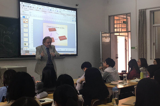 本网讯 2018年3月22日下午,法国克莱蒙-奥弗涅大学研究生院院长、比较文学教授艾瑞克·里瑟先生来我校为成人在线