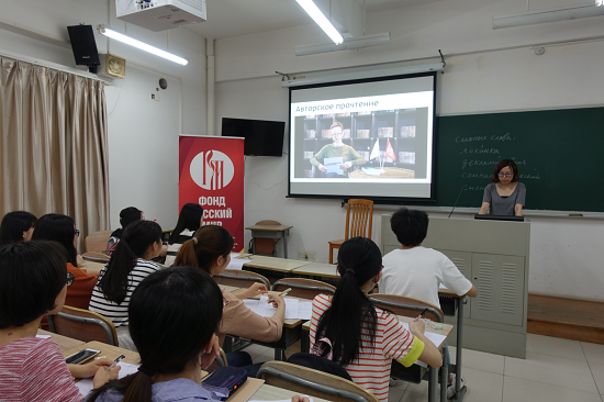 “TruD俄语测试”又被称为简易版“全民听写”。“全民听写”作为俄罗斯的公益教育活动始于2004年,由新西伯利亚大学发起,并于每年在世界各地测试点同日举办。该活动旨在为俄语使用者提供一个检验自己语言水平的机会,以推广正确规范的俄语书写。2016年起针对非俄语母语人群特别设立了“TruD俄语测试”,与传统版“全民听写”同时进行,内容为同一主题的简短听写和词汇测试。今年的“TruD俄语测试”有来自全球45个国家的124个城市参与,广州地区的测试点设在成人在线