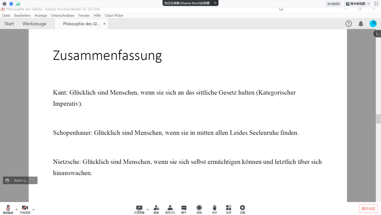 Johanna Kosch女士总结三位德语哲学家关于“幸福(Glück)”的观点