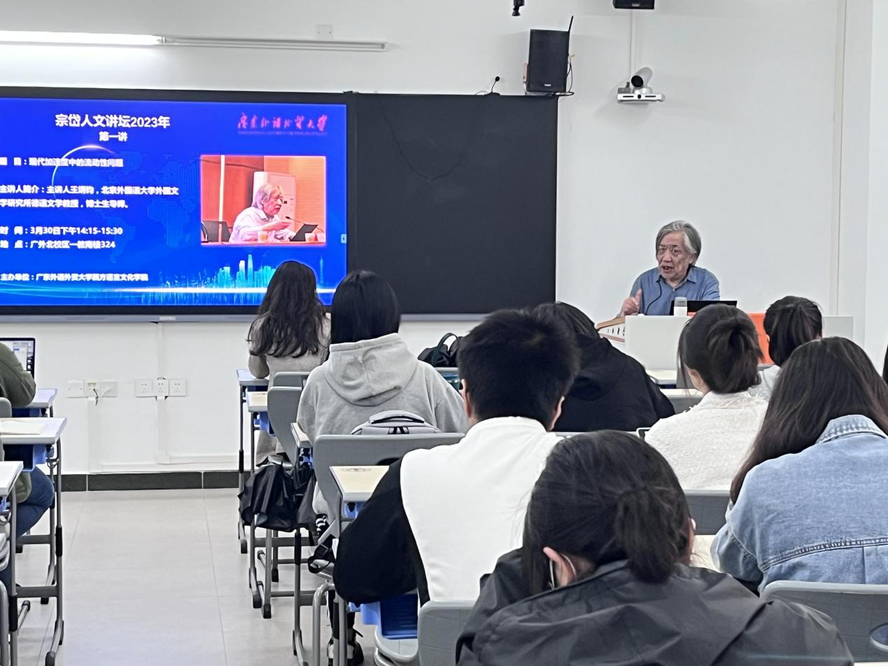 在北校区一教南楼324举办了宗岱人文讲座,北京外国语大学王炳钧教授应邀为成人在线
