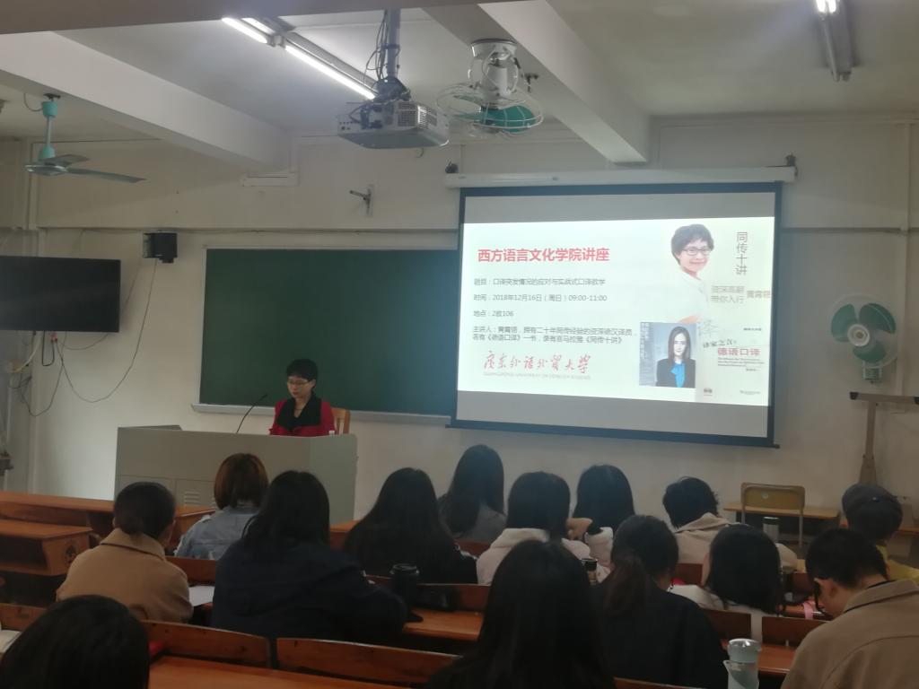 本网讯 2018年12月16日上午九点,德国驻沪总领事馆资深高翻黄霄翎在二教106教室为成人在线