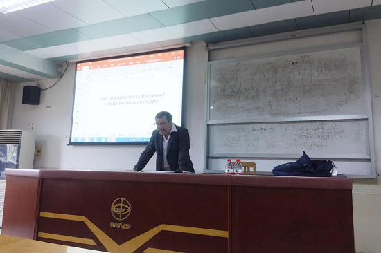 福雷斯特教授具有非常深厚的文学史知识,讲座中诸多颇具说服力的例子信手拈来,他还对萨特、加缪、马尔罗、陀思妥耶夫斯基等名家的作品片段进行了细致的分析,并与刘波教授对文学介入这一概念的界定进行了深刻地探讨。