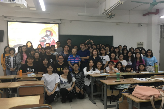 本网讯 2018年4月27日,现任中国意大利语教学研究会荣誉会长、意大利研究会副会长、中国意大利文学学会和意大利语翻译研究会常务理事、华侨外国语大学意大利语系主任张密教授应邀作客我校白云校区,为意大利语系全体师生带来了题为“走进中国历史的意大利人”的讲座。讲座由我校成人在线