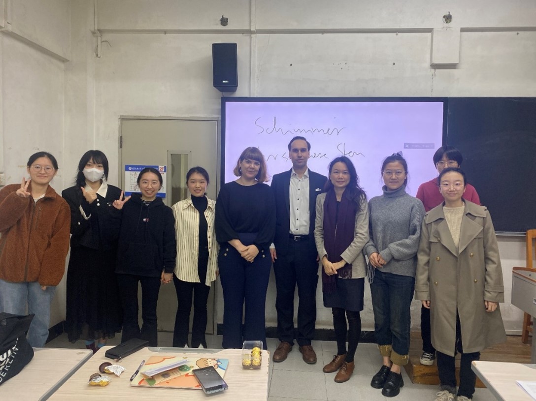 Dr. Schwingenschlögl还为德语系本科学生举办了一场关于德国浪漫派诗歌的工作坊,以艾辛多夫(Eichendorf)的《月夜》(Mondnacht)为例,使德语系师生对于浪漫派时期的文学有了新的认识和体会。
