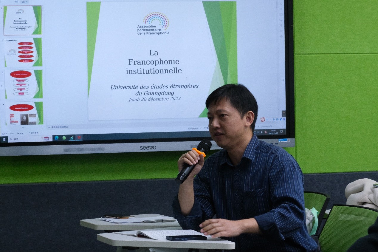 的师生带来了题为“服务于多边主义、多元文化和多语言主义的法语区机构”的学术讲座。本次讲座受到了法语系本科生和研究生们的热情响应,讲者与观者之间展现出了积极的互动,讲座气氛活跃。