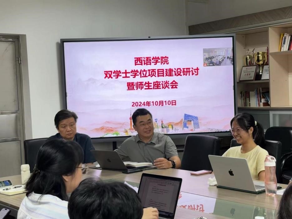 10月10日星期四下午,成人在线 于白云山校区第四教学楼207会议室顺利召开成人在线 双学士学位项目建设研讨暨师生座谈会。出席会议的人员有成人在线 副院长陈星、党委副书记魏少娟、经济贸易学院国际贸易系系主任田云华,法语系主任叶剑如、德语系主任助理张思源、西班牙语系主任吴凡、俄语系主任陈欢、意大利语系主任张海虹、葡萄牙语系主任助理杨菁,教务办公室老师以及数名西语2024级双学士学位班级学生代表。本次会议以双学士学位项目的建设研讨,就学生提出的关于学习方面的问题、建议以及未来规划上的疑惑展开讨论,各领导老师给出了一些建议并对同学们作出了殷切希望。