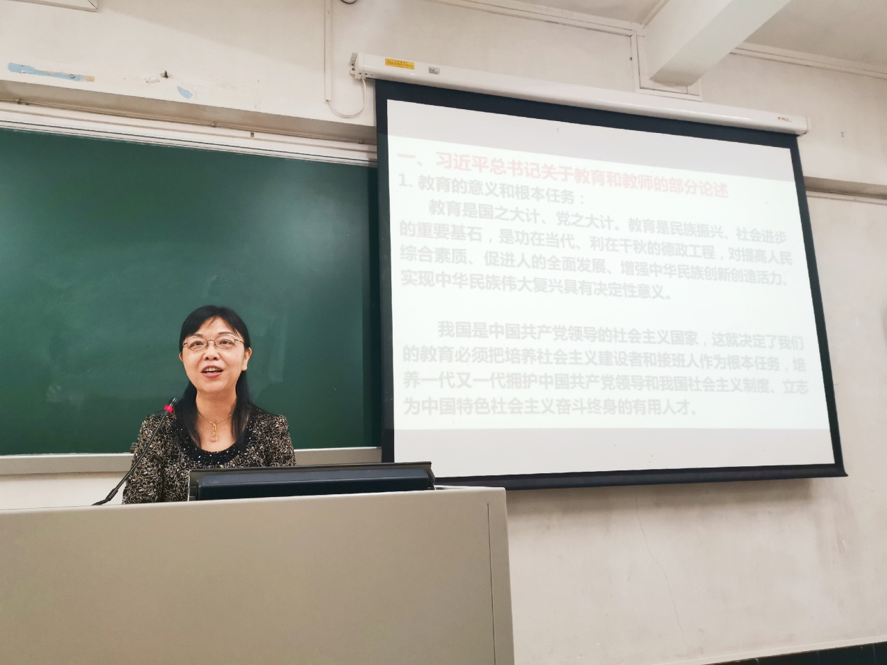 敖湘晖书记作了题为《牢记立德树人使命,加强师德师风建设,打造可信、可敬,乐为、有为的教师队伍》的报告。报告分为两个部分,第一部分是向全院教职工解读习近平总书记关于教育和教师的部分论述。提出要按照习近平总书记提出的“四有好老师”“四个引路人”要求建设教师队伍,教师要时刻铭记教书育人的使命,甘当人梯,以自己的模范行为影响和带动学生。第二部分是从理论学习、领导班子建设、干部队伍建设、党支部建设、思想政治教育工作、精准扶贫、统一战线和工会工作等方面解读2019年学院党委工作要点。