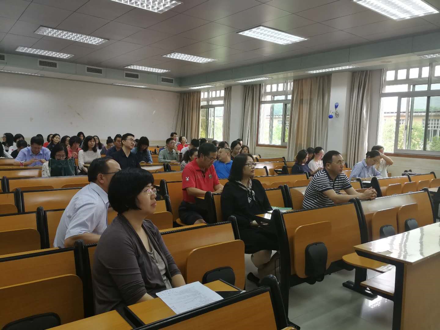 全体教职工认真聆听)
