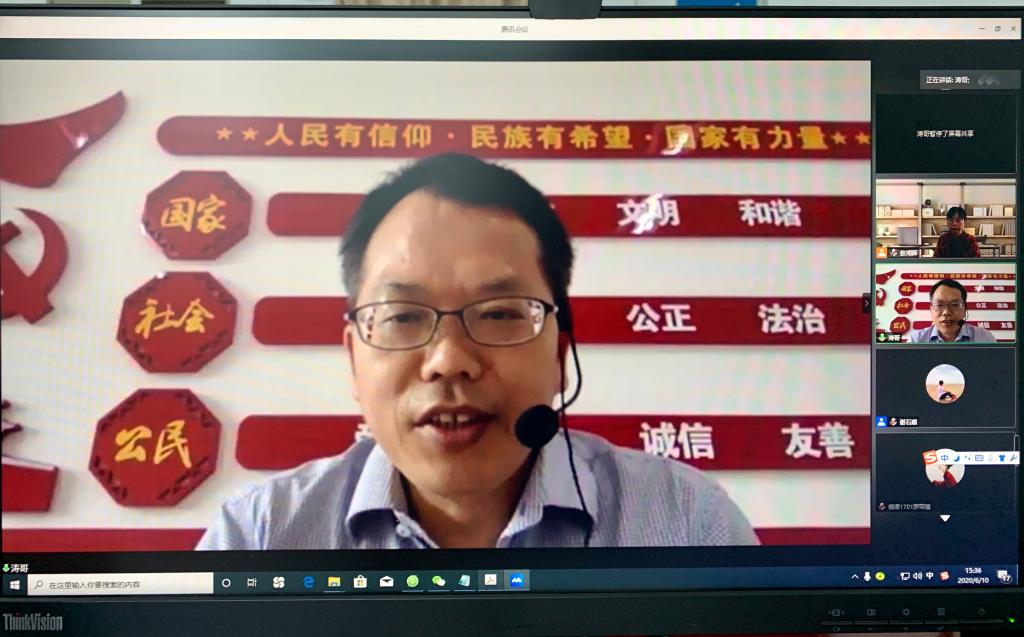 邀请我校党委常委、宣传部部长、思政宣讲团成员胡文涛教授作主题为“我国疫情防控中的舆情演变与国际舆论斗争”专题报告。学院全体教职员工,学生党团干部,入党积极分子和发展对象共120余人参加宣讲会。宣讲会由学院党委书记敖湘晖主持。