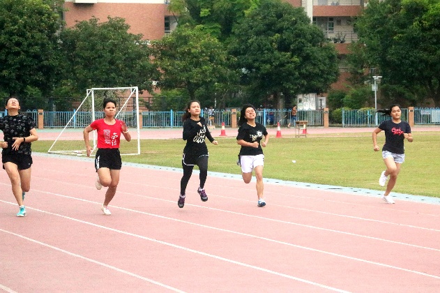 早上9:30,伴随着响亮的枪声,径赛正式拉开序幕!首先开场的是女子100米比赛,在阵阵激动人心的加油呐喊中,运动员们火力全开向终点冲刺,最终俄语1702的卢人琳夺得第一,而第二、三名分别为葡萄牙语1701冯瀚仪和西班牙语1801的周庚妮。