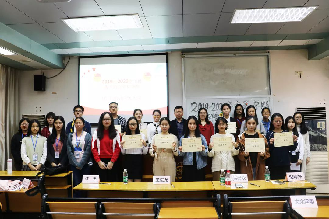 2019—2020上半学年“青春心向党,建功新时代”团日评优大会于四教424顺利举行。进入决赛的10个基层团支部采用了朗诵、情景剧、双语合唱等多种形式,展示了同学们深入了解党团知识与习近平新时代中国特色社会主义思想,投身公益志愿服务,并积极与时政热点、各自专业相结合的精彩团日活动,充分展现了当代团员的风采。评委由成人在线