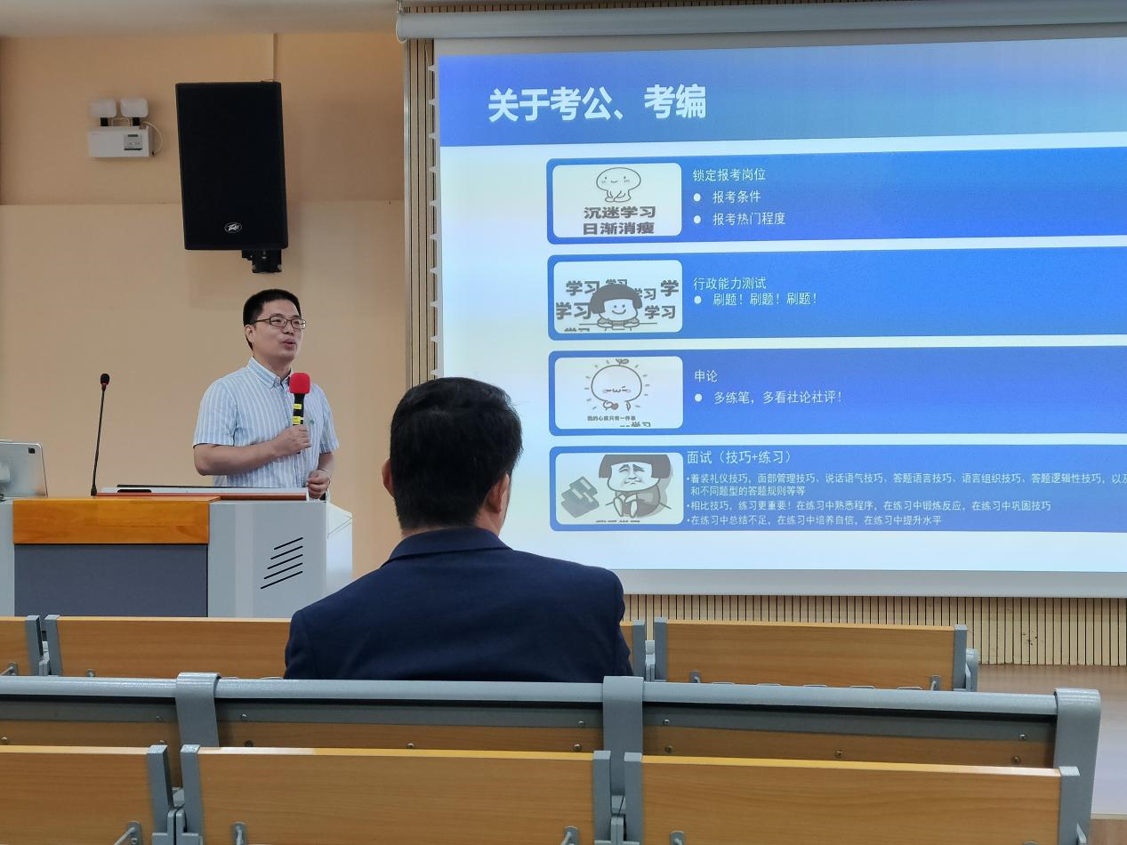 研究生就业指导讲座暨推动会在北校区一教南楼109举办。学校学生就业指导中心副主任林宏伟老师给即将毕业的研究生带来了题为《就业,你准备好了吗?》的专题讲座。讲座暨推动会由成人在线