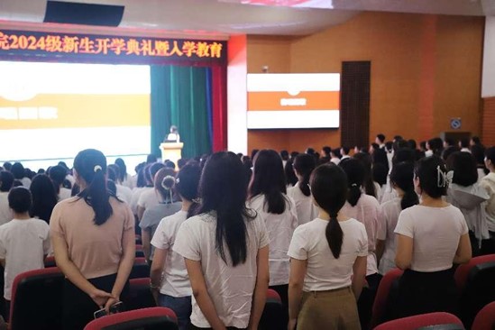 “筑梦广外·共绘未来——2024级新生开学典礼暨入学教育”在白云山校区六教报告厅举行。2024级全体本硕博新生及学院全体领导班子,各系部主任、研究生主管,新生辅导员300余人共同参加。活动由学院团委书记、辅导员冯迪南主持。