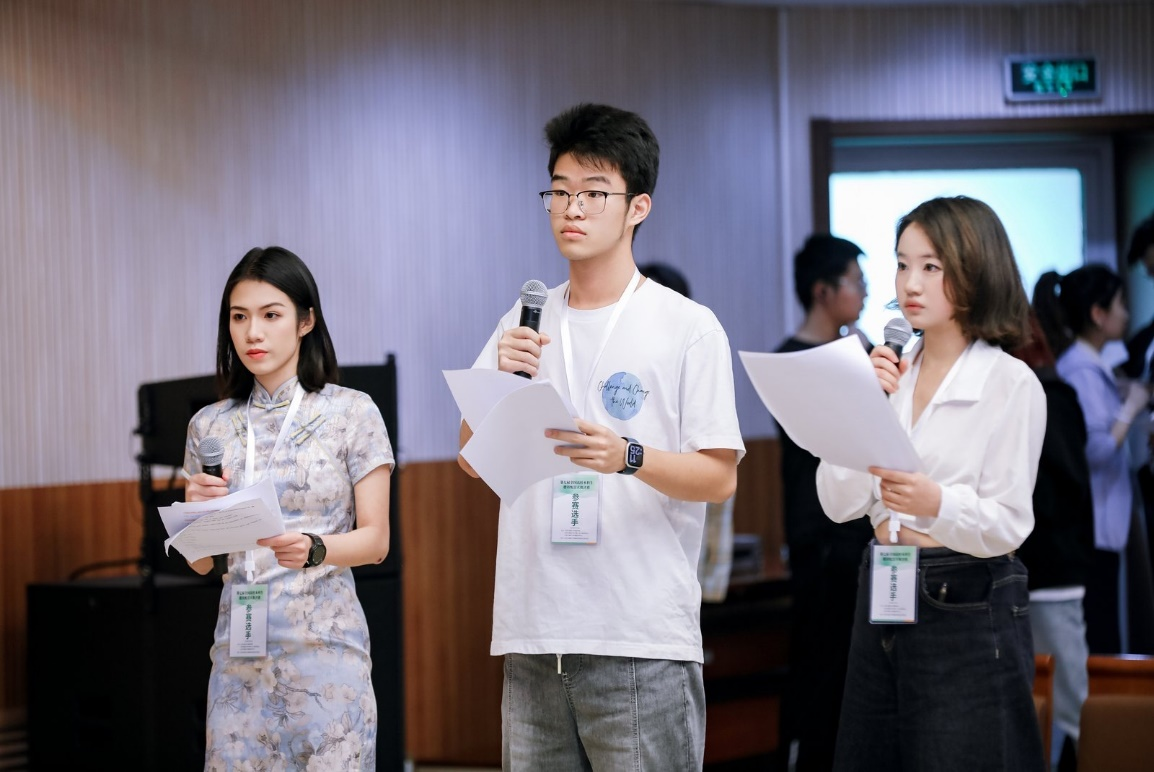 本届大赛以“和平”为主题,决赛共有来自全国12所高校的优秀代表队同台竞技,包括北京外国语大学、中国人民大学、北京语言大学、重庆大学等。比赛共分两轮进行,延续去年传统以“即兴配音”的方式为电影片段进行德语配音。第一轮配音片段选自电影《伯尔尼的奇迹》(Das Wunder von Bern),经评审打分后,排名前八的队伍晋级第二轮并围绕电影《何处为家》(Nirgendwo in Afrika)进行即兴配音。任鸿翔、程朗、吉盼三位同学以自然的语言表达和扎实的配音技巧赢得评委肯定,顺利晋级第二轮,最终斩获全国二等奖。