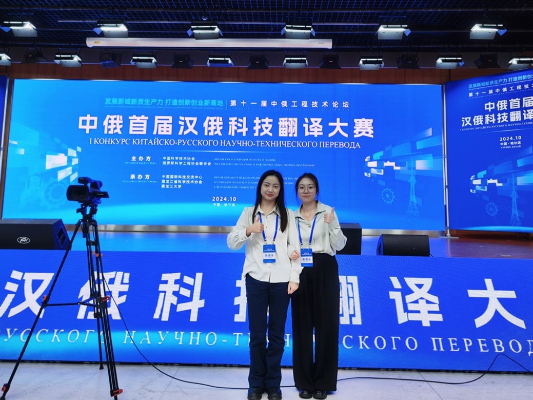 本网讯 2024年10月20日,中俄首届汉俄科技翻译大赛在黑龙江大学落下帷幕。成人在线 俄语系选派23级口译硕士研究生牛芸茜、秦梦换代表成人在线 参赛,两名选手凭借出色表现和稳定发挥,经初复赛多轮比拼纷纷闯入决赛。最终牛芸茜同学获得二等奖(全场第二名),秦梦焕同学获三等奖(第五名)。此次参赛由俄语系梁玮琦老师、姜超老师指导。