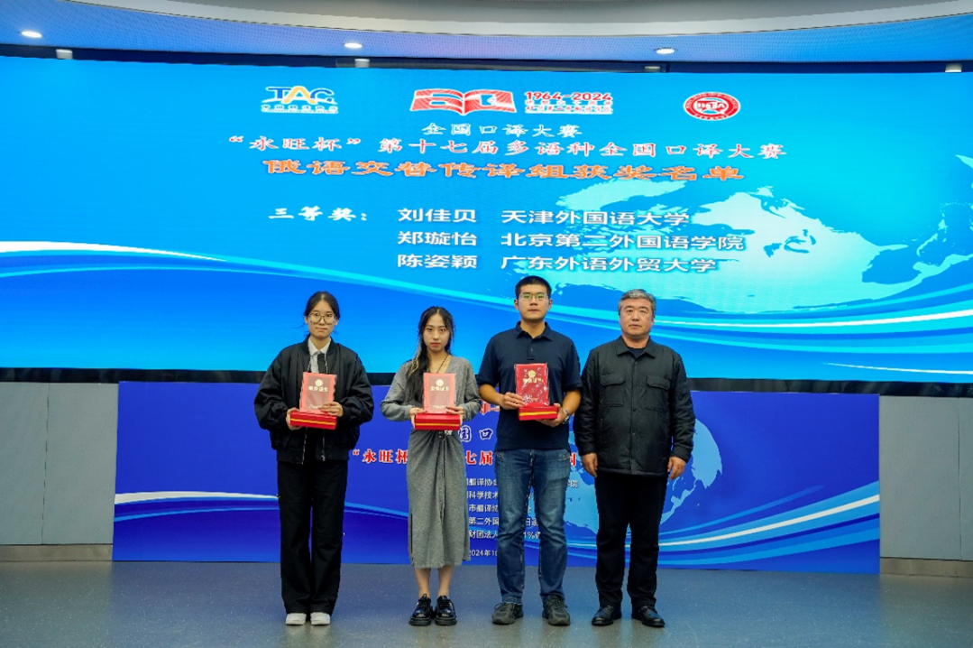 陈姿颖(左一)荣获“永旺杯”俄语交传组三等奖