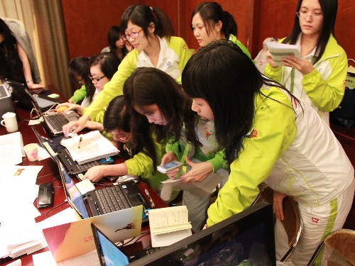 亚运外事办志愿者工作场景