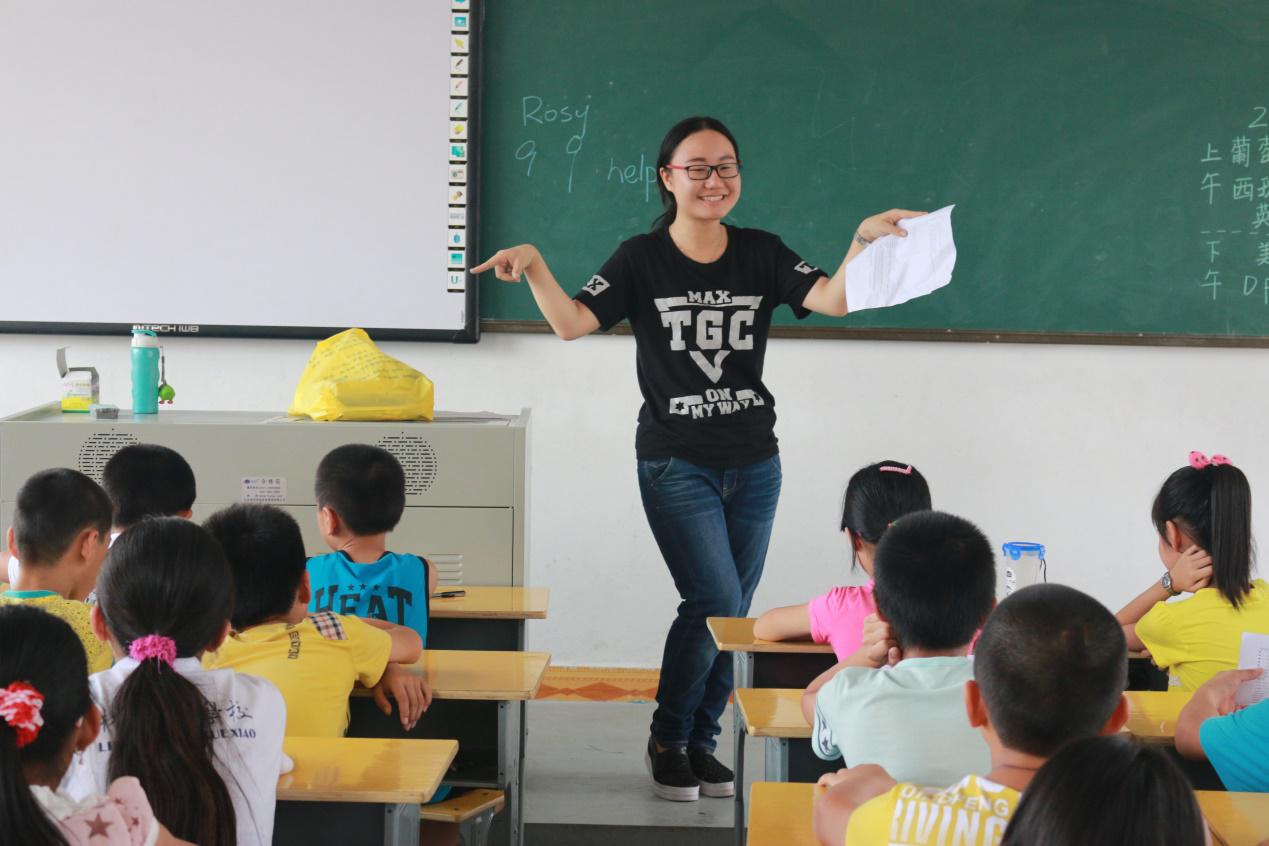 在学校,哥哥姐姐是老师的学生;在这里,哥哥姐姐是学生的老师。教学经验并不丰富的哥哥姐姐,经过前几日的实践和不断改进,也在逐渐成长。如早上的英语课,老师通过生动的短小的故事告诉大家“不是每一个How are you?”都得用“I am fine”来回答,引出如何用英语和别人问好的知识点。其中,”perfect!”这一枯燥的单词,在老师的“完美“姿势下,显得有趣,好记;并不懂潮汕话的小游老师在上一节的在一班的英语课时,在孩子们突然联想到的“Awesome!” 与潮汕话方言中的“剪刀石头布”谐音”O Do Som”指引下,将其更好地教予其他孩子。老师们在教孩子知识的同时,一定程度上也在逐渐增长教学能力,双向流动,都是互相的“老师”
