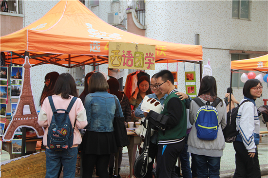 路过的学生驻足西语团学摊位