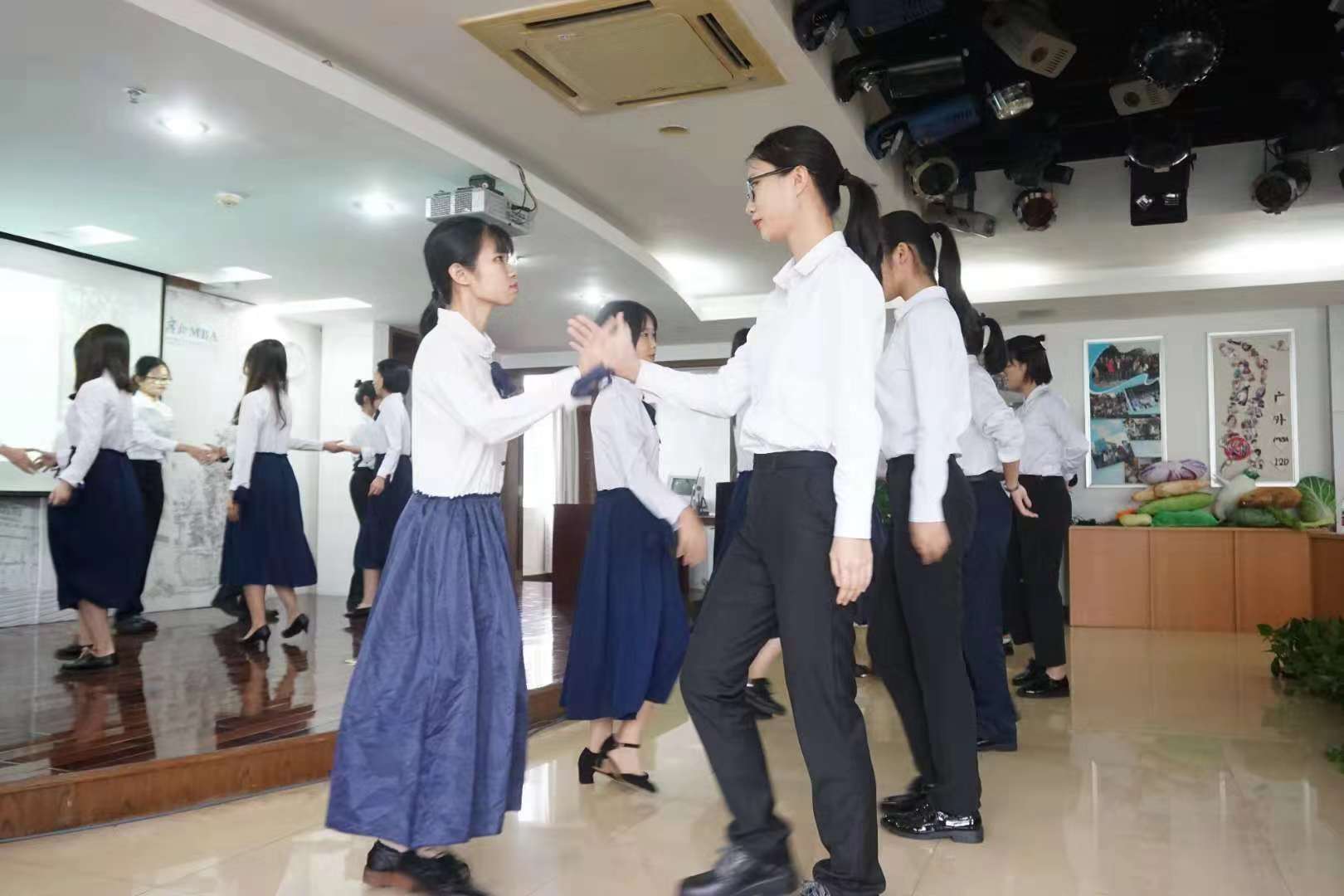 学生们表演波兰传统舞蹈