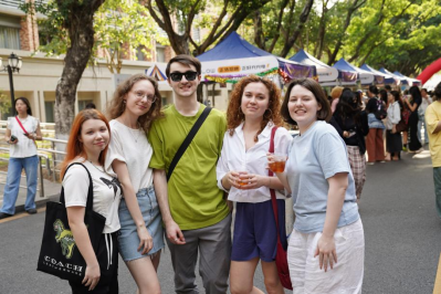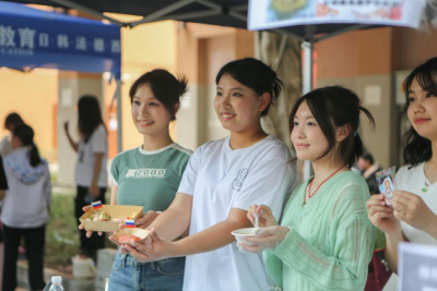 各语系、中文学院、广州市白云区白云外国语中小学、西语校友会等摊位一同开启欧罗巴美食盛会,精心准备琳琅满目的异国风味美食:从俄语摊位的红肠和列巴、西班牙语摊位的巴斯克蛋糕、法语摊位的法棍,到德语摊位的啤酒和香肠、葡萄牙语摊位的特调果汁,再到中文学院摊位的桂花糖,让全校师生足不出校便能体验世界美食文化。广州法语联盟、南国商学院成人在线