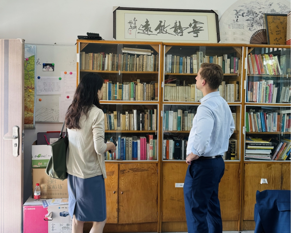 铭君副院长陪同来宾参观德语系办公室