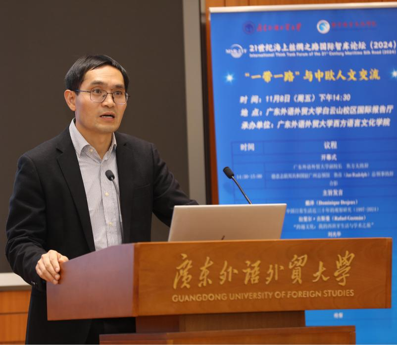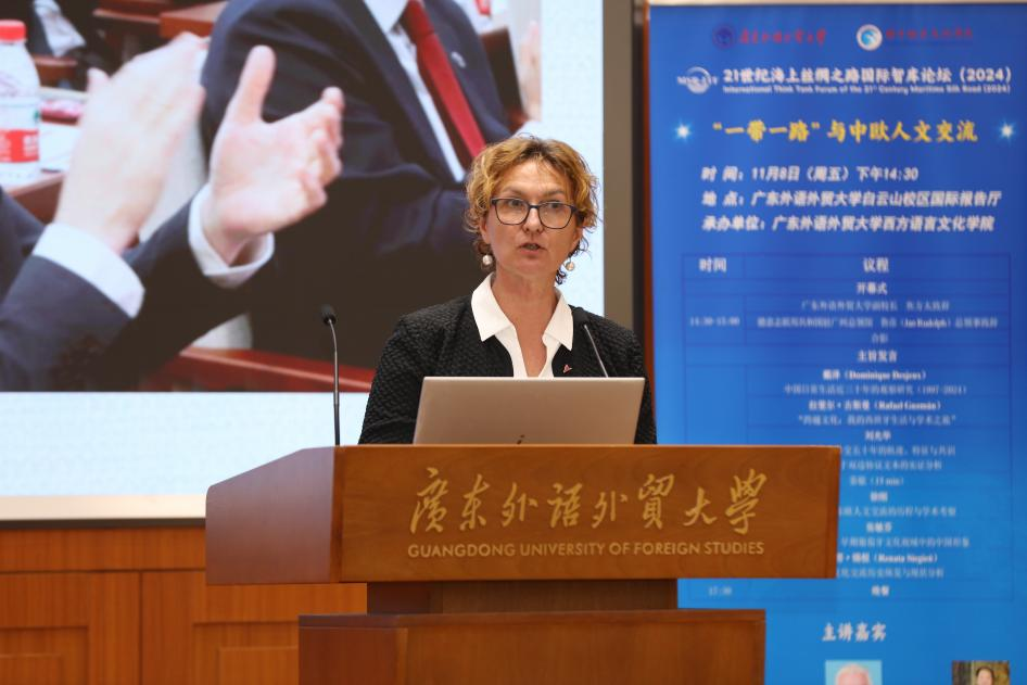 2024年11月,由成人在线 承办的21世纪海上丝绸之路国际智库论坛(2024)“一带一路”与中欧人文交流平行分论坛在成人在线 白云山校区国际报告厅成功举办。此次论坛汇聚了来自德意志联邦共和国驻穗总领馆、法国巴黎西岱大学、西班牙格拉纳达大学、中国社会科学院、上海外国语大学、兰州大学、成人在线 等国内外高校及机构的专家学者,围绕“一带一路”与中欧人文交流的主题展开深入交流与探讨。本次论坛涉及中文、法语、德语、西班牙语、葡萄牙语、波兰语等7种语言,成人在线 派出近20人的师生团队,为论坛全程提供同传服务。