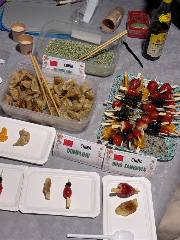 2024年12月12日,在德国Hochschule Wismar交换学习的2022级同学们受邀参加了大学举办的国际文化节。为了向来自世界各地的师生展现中国文化之美,同学们亲手制作了饺子、冰糖葫芦、奶茶等美食,展示了窗花、中国结等传统文化技艺,同时还设置了筷子体验——夹豆子游戏以及剪纸体验项目。前来中国摊位参观体验的客人络绎不绝,大家都对中国美食和文化赞不绝口。不少外国人体验了挑战项目并且与中国学生交流相关的文化知识。本次活动不仅在国际师生心中埋下了一颗名为中国文化的种子,对于来交换的同学们来说,也是一次非常宝贵的体验。大家既传播了中国文化,也了解了其他国家的文化。在彼此的交流中,文化的交汇与碰撞勾勒出多彩的画卷,唱响和谐与个性共存之歌。