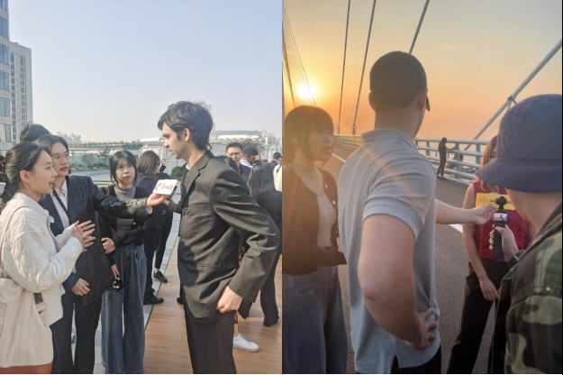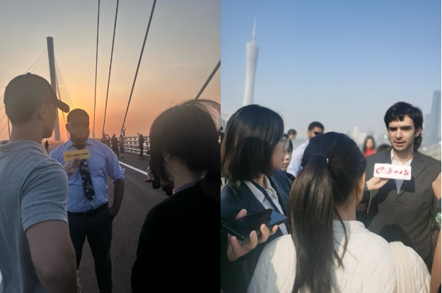 西班牙语语言文学硕士研究生刘敏菁和李晨曦全程参与翻译工作,准确且富有表达力地将记者的每一个问题传递给参访嘉宾,并将嘉宾的回答清晰传达给记者。无论是在参访永庆坊、粤剧艺术博物馆,还是在参观黄茅海跨海通道和深中通道的过程中,她们始终发挥着重要的桥梁作用,为记者们提供了高水平的翻译支持。