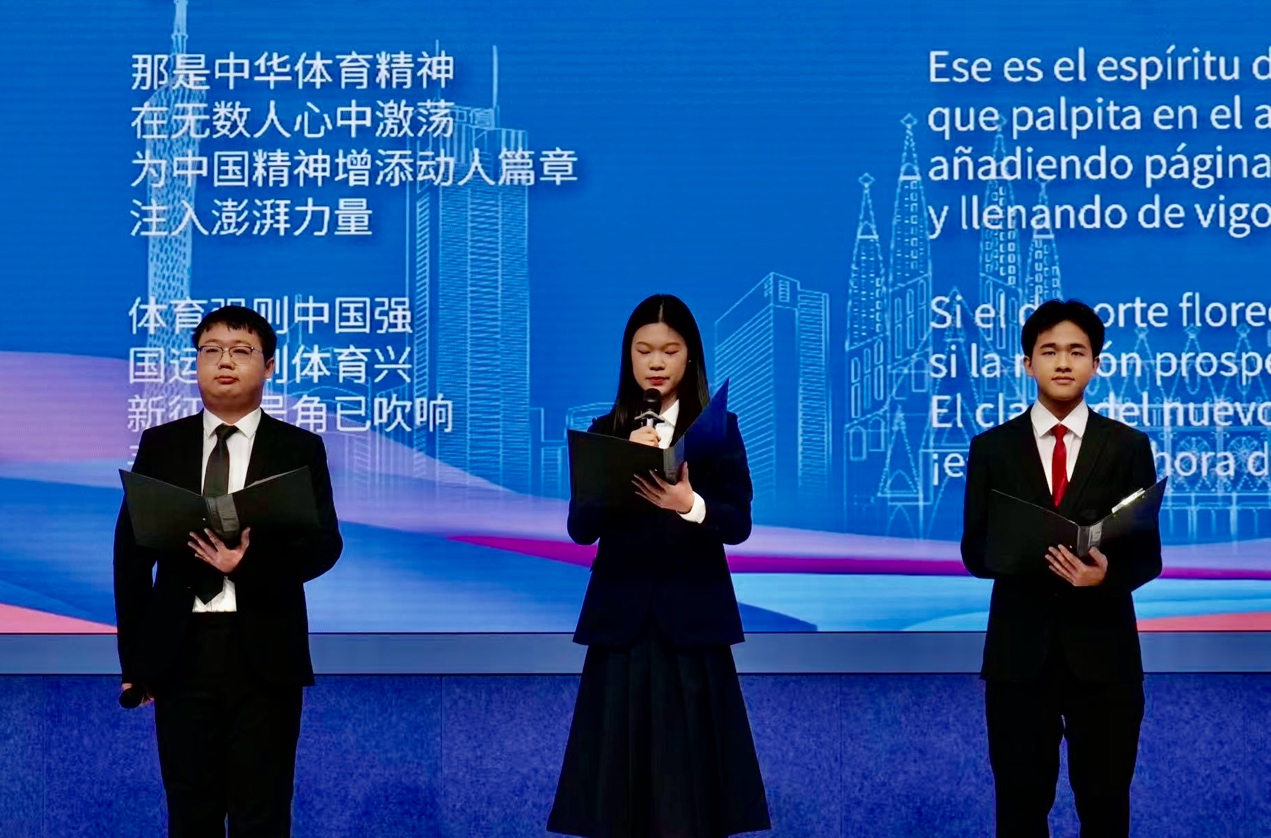 本网讯 2024年11月29日,由十五运会和残特奥会广州赛区执委会主办的“联通融合 相聚全运——中外友人体育文化交流故事会”在广州智慧城市运行中心多功能厅举行。此次活动汇聚了来自中国、西班牙及阿根廷文学界、经济学界和体育界多名代表,共同分享他们的经验与见解。成人在线 西班牙语系师生受邀为这一盛会提供翻译服务,并献上中西文诗歌朗诵,展现文化与体育的交融。