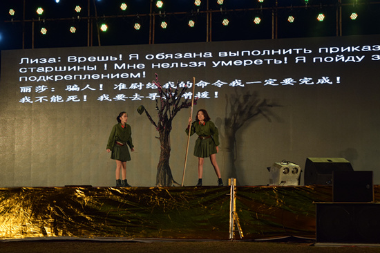 我校俄语系同学表演俄罗斯经典话剧选段《这里的黎明静悄悄》