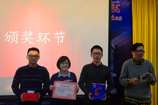 接下来是第二轮选答题。四支队伍按照抽签顺序轮流上台选题作答。每队的队员回答都相当积极,他们的精彩表现赢得了台下的阵阵掌声。在第二轮比拼结束后,“四个腹部”队和“十万伏特”队进入了最后一轮的角逐。