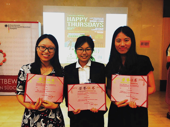 代表我校参赛的三名同学都以优秀的实力取得了优异的成绩,展现了我校学生较强的综合素质与专业水平。在祝贺她们的同时,让我们共同期待我校在下一届华南地区大学生德语演讲比赛中更精彩的表现!