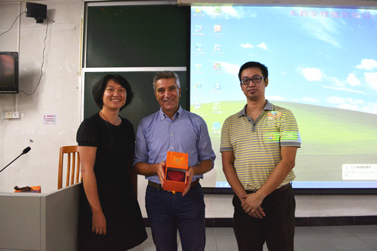 讲座结束时,高翔老师和张海虹老师代表学校向Ventrone教授赠送了学校纪念品,并合影留念。
