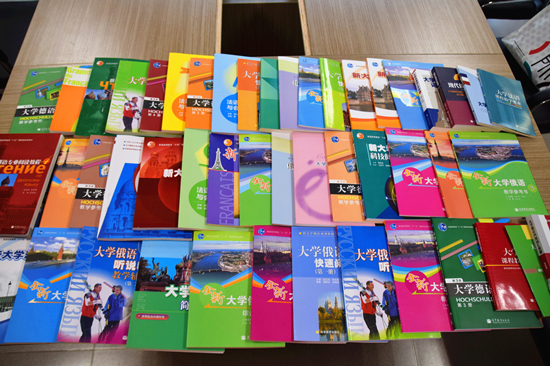 赠送了一批书籍,内容涉及了俄语、法语、德语等多门语言。成人在线
