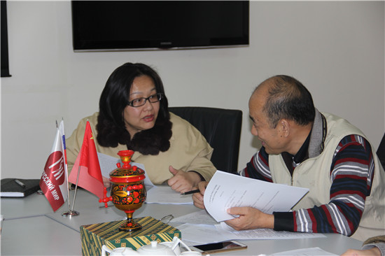 “中欧跨文化”研究基地在北校区四教320俄语中心召开了2015年建设研讨会。会议由基地主任杨可教授主持,指导专家英文学院温宾利教授、外文中心张进教授、校科研处李海琳科长以及基地全体成员(除一人在国外访学)出席了会议。