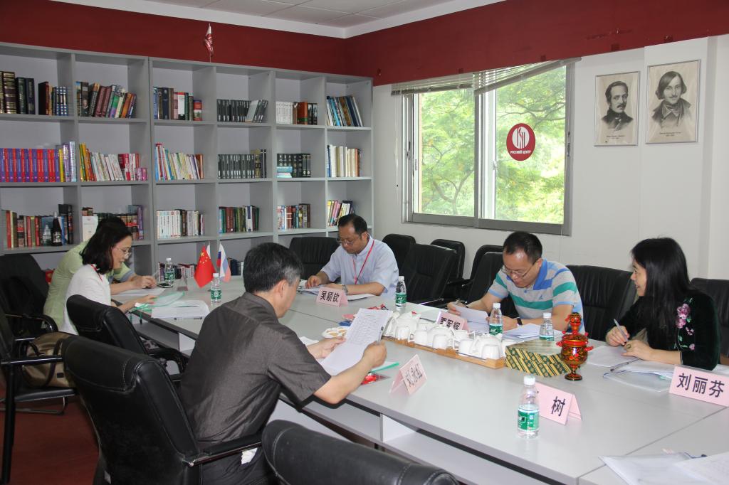 评估工作于早上九点在俄语系正式开始。专家们首先听取了俄语系主任石树老师的汇报。石树老师仔细梳理了俄语专业的发展历程,从专业建设、师资队伍、培养目标、教学改革、学生实习实践及国际交流等方面全面地介绍俄语专业所取得的成果,也对俄语专业现存的问题做出了深刻剖析,请专家们提出宝贵意见。随后,专家小组走访了教育技术中心、分组听课并查阅了论文试卷等资料。