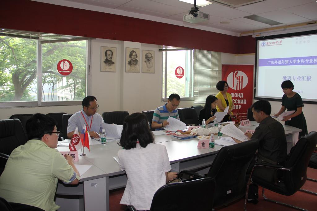 刘丽芬老师代表专家评估小组做了总结性发言。专家组首先充分肯定了广外俄语专业的建设成就及在华南地区的优势地位和领先作用。俄语专业的优势与特色在于立足广东,培养本地所需人才,学生既懂粤语又懂俄语与英语,具备多语言优势及过硬的俄语语言基本功;俄语专业注重国际化人才培养,与多个俄语国家高校建立互派学生的合作关系。同时也指出了俄语专业存在的一些问题,比如师资相对不足,教学研究相对欠缺;教材更新缓慢,教材编写有待加强。最后,评估专家们对俄语专业的发展提出了很多中肯的建议。比如,为达到实用型人才培养目标,建议在专业核心课程上增加口语课;提高师生比例,多形式、多渠道引进人才,聘请国内外知名学者;进一步突出特色课程的引领作用,使专业特色更加鲜明;加强大学生科研立项指导。