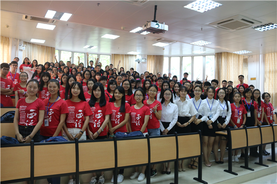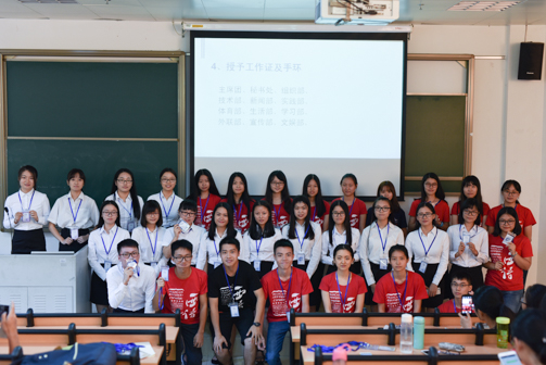 最后,主席团成员及各部部长为新一届团学干事派发工作证和手环,全体团学成员合影留念,成人在线
