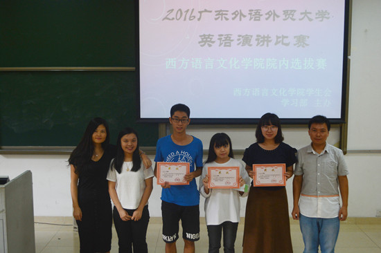 所有参赛选手演讲结束,比赛接近尾声。评委们上台发言,他们赞扬了各参赛选手的出色表现,并提出了积极的建议。最后,由主持人宣布赛果,比赛嘉宾及评委分别为获奖选手颁发荣誉奖状。至此,2016年英语演讲比赛之成人在线