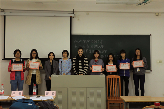 不知不觉,最激动人心的时刻到来了——宣布获奖选手名单。经过评委尚冰老师和外教拉姆普洛斯·帕帕雅尼斯老师的综合考量,最终曾嘉慧等三名同学获奖。宣布完毕,大家都对获奖选手报以热烈掌声。